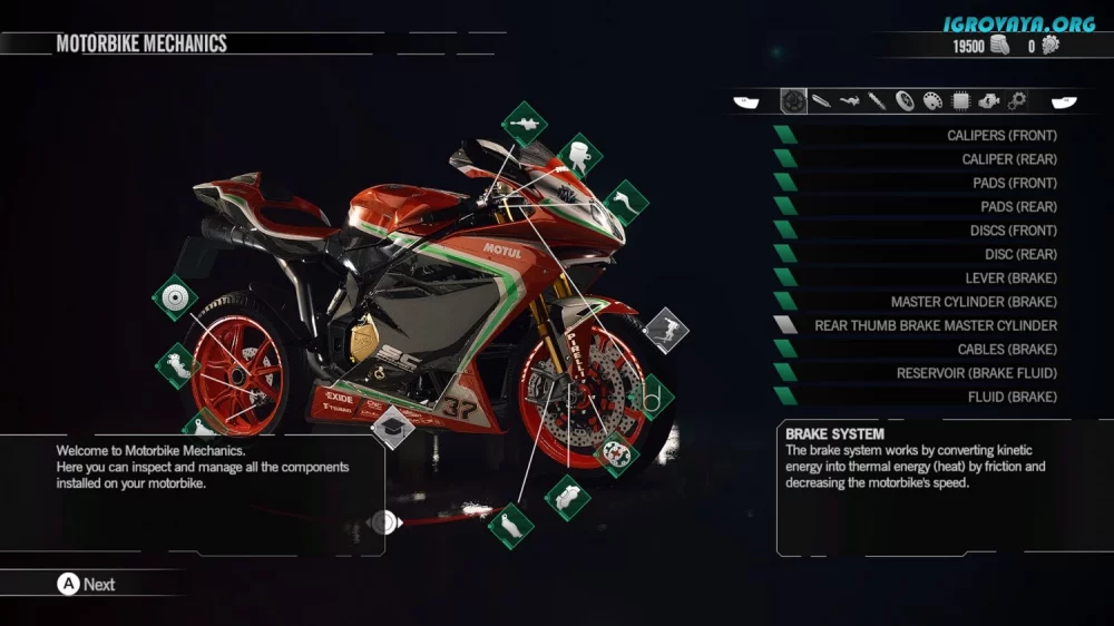 Мотоциклы в RiMS Racing представлены ограниченным ассортиментом, но каждый из них можно настроить по своему вкусу. Вы можете улучшать мотоцикл с помощью множества деталей и настраивать его поведение в реальном времени. Это позволяет каждому игроку создать уникальный стиль езды и достичь максимальных результатов на трассе.