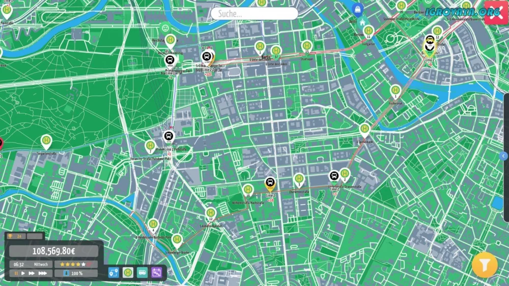 City Bus Manager предлагает игрокам увлекательную возможность стать управляющим автобусным парком в реальном городе. Постройте эффективные маршруты, следите за движением каждого транспортного средства и обеспечьте комфортную доставку пассажиров.