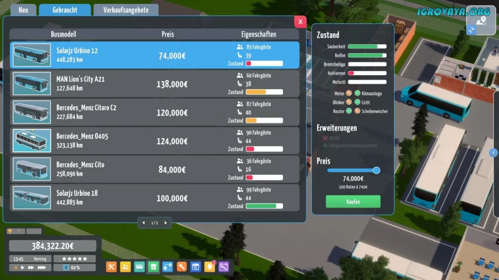 Зарабатывайте деньги, улучшайте автопарк, модернизируйте здания и парковки. Создайте свою уникальную атмосферу в игре, заботьтесь о внешнем виде и внутреннем состоянии транспортных средств. Ваши улучшения и инвестиции принесут вам успех и признание от пассажиров.