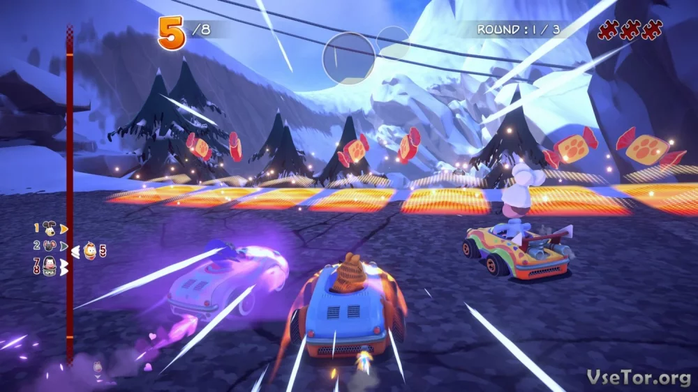 Garfield Kart - Furious Racing - это захватывающая аркадная гоночная игра, где вы сможете насладиться заездами в компании забавного кота Гарфилда на захватывающих трассах, наполненных различными препятствиями и крутыми поворотами.