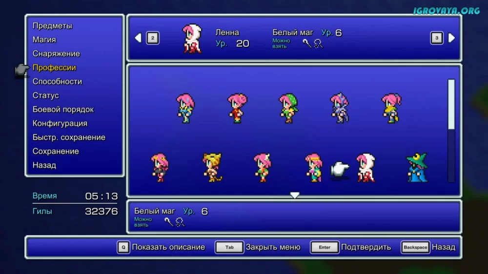 FINAL FANTASY V предлагает вам не просто версию старой игры, а полноценное обновление, которое стоит опробовать. Отправляйтесь в увлекательное путешествие, наслаждайтесь улучшениями и помогите спасти мир от опасности!