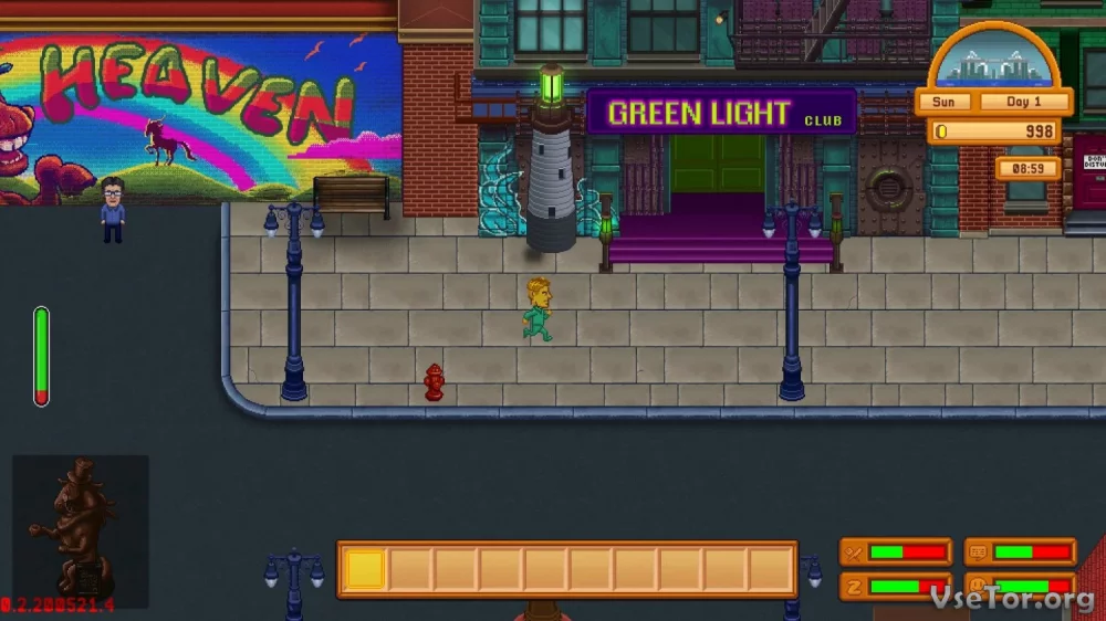 Эта игра предложит вам множество возможностей для развития персонажа и погружения в захватывающий игровой мир. Забота о потребностях героя будет ключом к успеху - обеспечивайте его едой, отдыхом, мотивацией и радостью. Развивайте его навыки через работу и достижение поставленных целей.