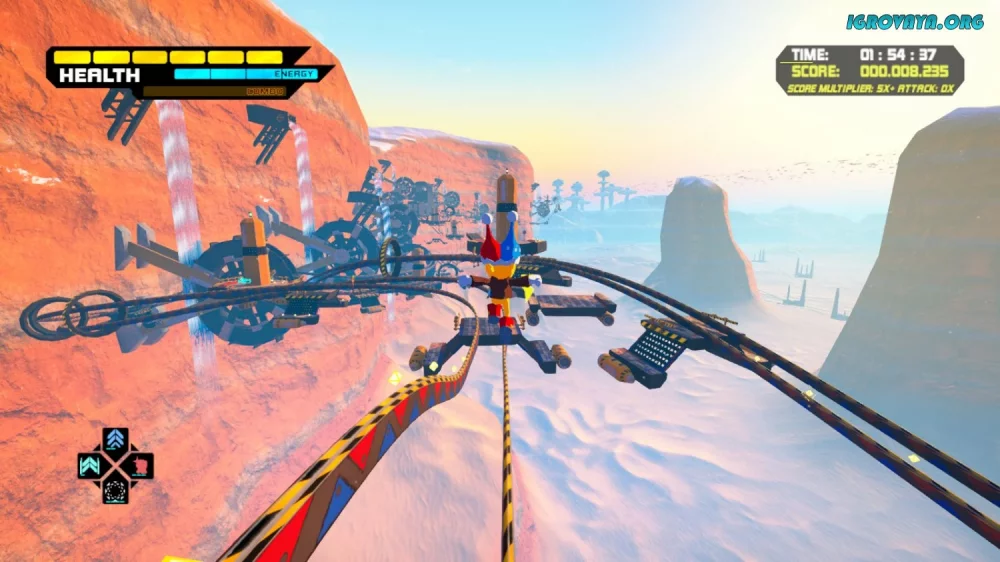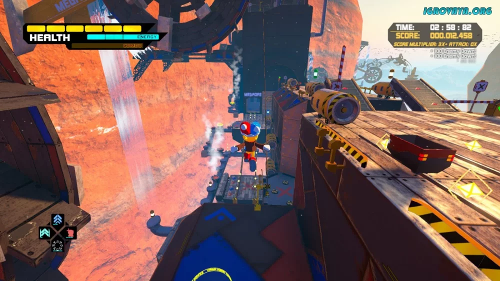 - Сбалансированное сочетание платформера и экшена, которое делает геймплей захватывающим и динамичным. Быстро передвигаясь по уровням, ищите пути к цели и собирайте улучшения для своего персонажа.
