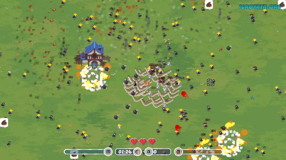 - Улучшайте свой арсенал, приобретая новое оружие, и стройте постройки на участке, чтобы защититься от толп врагов.