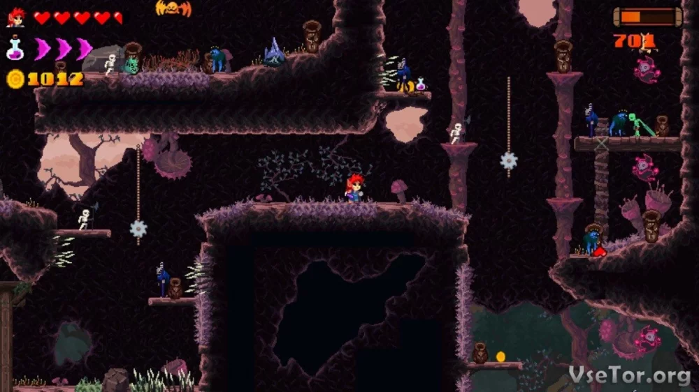 Каждый шаг вашей ведьмы будет наполнен опасностью и вызовами. Вы пройдете через многочисленные уровни, на каждом из которых вас ожидают новые испытания. Пролететь через зыбучий песок, попрыгать по узким платформам, сразиться с чудовищескими созданиями - все это лишь малая часть испытаний, которые придется пройти вам.