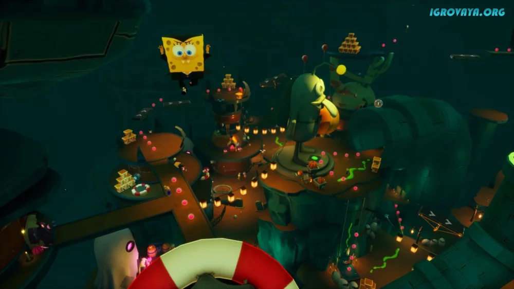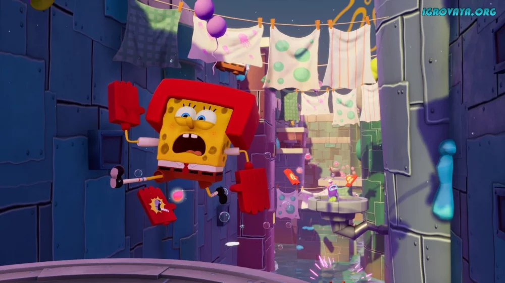 - Игра создана с участием оригинальных создателей мультсериала, что обеспечивает атмосферу Бикини Боттом;