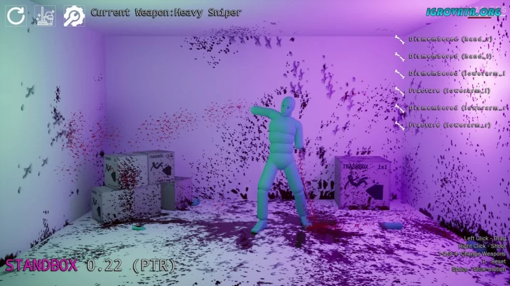 Загрузите STANDBOX прямо сейчас и окунитесь в мир безграничных возможностей, где вы сами решаете, что делать с тряпичной куклой. Представьте себя хирургом, пиротехником или просто безудержным разрушителем - выбор за вами! Уничтожайте, экспериментируйте и наслаждайтесь процессом - STANDBOX ждет вас.
