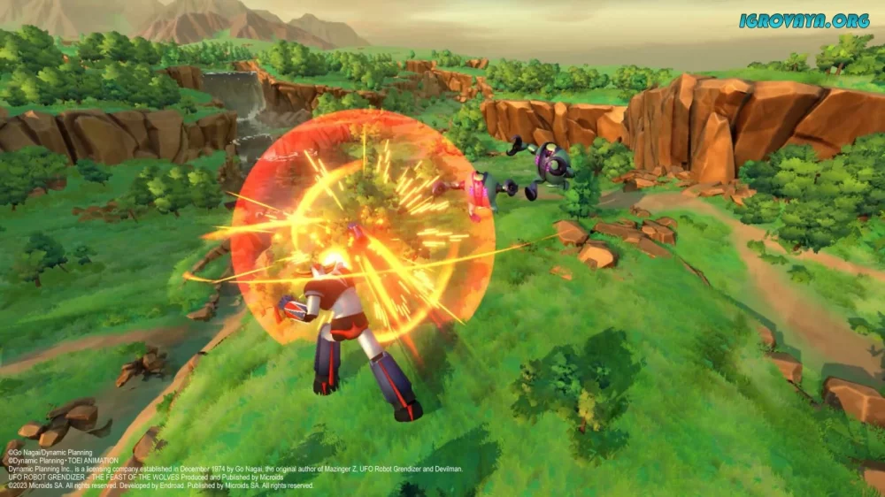 UFO ROBOT GRENDIZER - The Feast of the Wolves - это захватывающее приключение, которое точно понравится поклонникам популярного мультсериала. После разрушения планеты Флид имперцами, принцу по имени Дайсуки Умон пришлось бежать на Землю и прятаться у доктора Гэндзо. Но империя Веги готова использовать любые средства, чтобы добраться до наследника трона. К счастью, профессор создал могущественного робота, который поможет главному герою защитить себя и всех жителей Земли от космической угрозы. Настало время сразиться со злом и прекратить тиранию Веги.