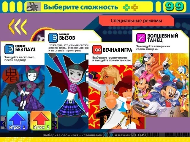 Выбрав трек в свободном режиме, вы окунетесь в мир зажигательных ритмов и плотных битов. Четыре направления - вниз, вверх, влево и вправо - станут вашими союзниками в этом танцевальном путешествии.