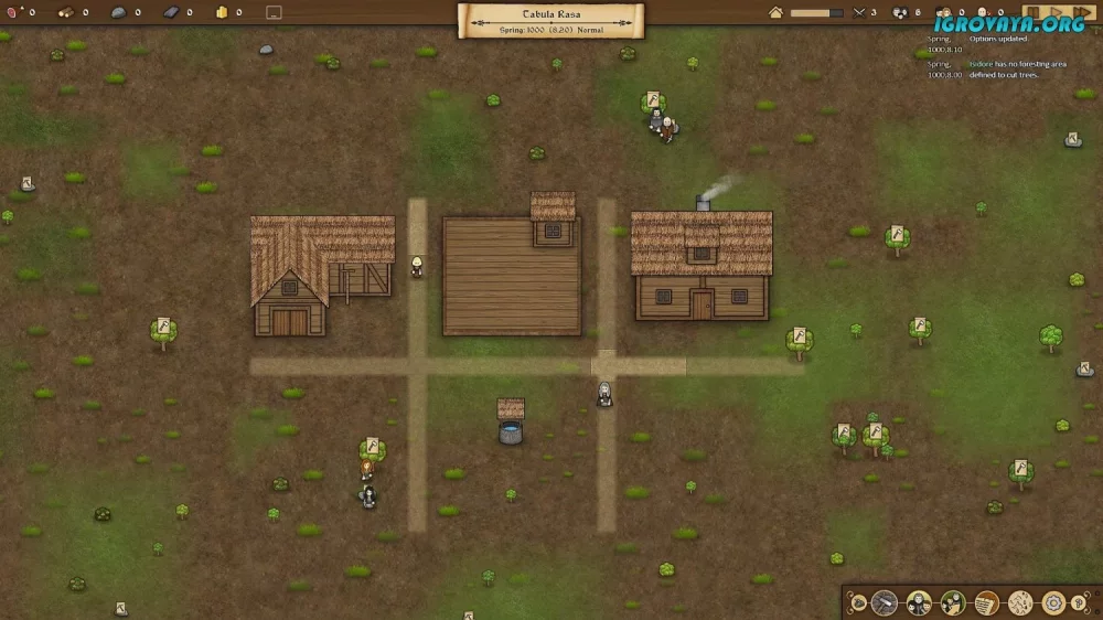 - Начните с малого: получите небольшой участок земли, постройте первые здания и привлеките первых жителей.