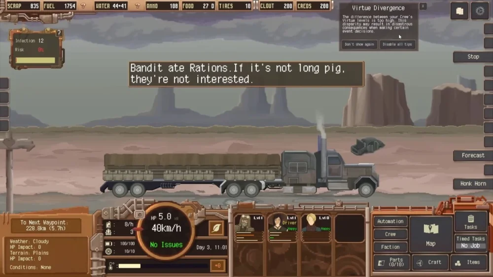 На вашем пути по Пыльным землям будут поджидать множество неожиданностей, среди которых загадочные сигналы, зловещие зомби и опасные конкуренты, стремящиеся вас обокрасть. С каждым новым рейсом вы будете открывать для себя все больше возможностей и ловушек, которые подготовил этот мрачный мир. Мастера торговли ждут награды, а каждый успешный контракт поможет вам утвердить свои позиции и донести свои условия до остальных. Пройдите путь от простого курьера до настоящего магната в условиях жестокой пустоши и продемонстрируйте всем, на что вы способны.