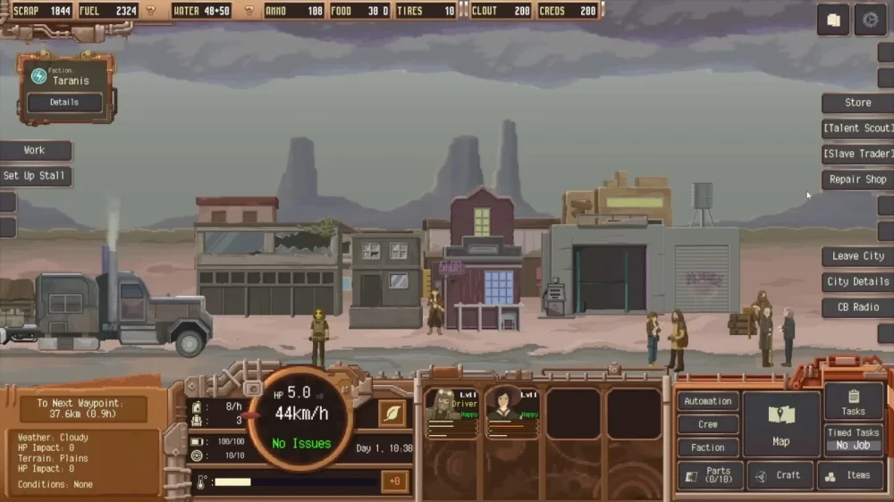 Погружайтесь в захватывающий мир, где вы сможете создавать и развивать свой собственный город в условиях постапокалипсиса. В этом симуляторе выживания вам предстоит управлять мобильной базой на колесах, готовясь к бою с непростыми обстоятельствами и опасностями, подстерегающими на каждом шагу. Ваша задача — стать успешным торговцем в бескрайних просторах Пыльных земель, заключая выгодные контракты и наладив связи с различными фракциями. Постепенно вы сможете превратить свой небольшой город в процветающую столицу враждебного мира.