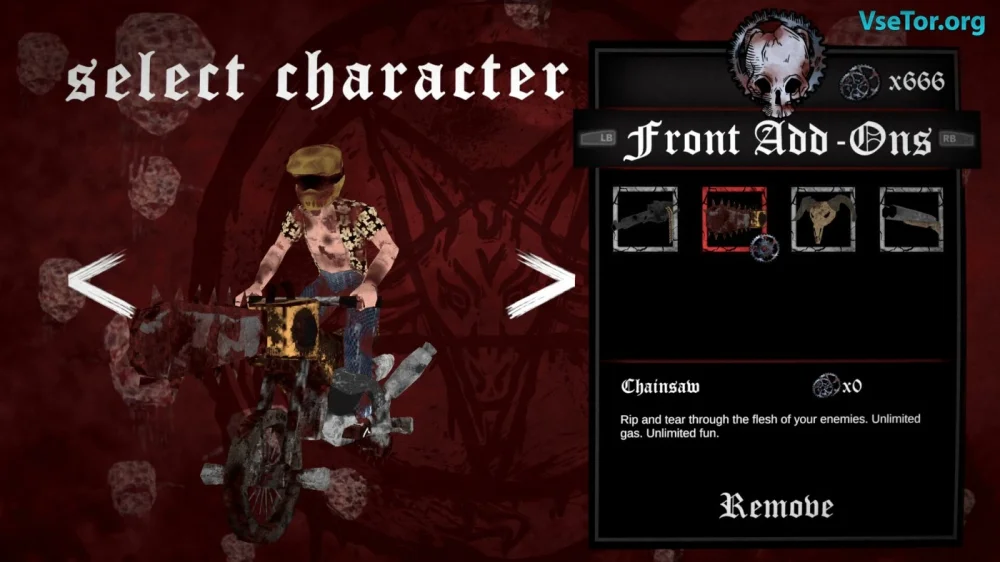 Погрузитесь в мир Motordoom, где захватывающие трюки на двухколесных транспортных средствах сочетаются с незабываемым сражением против злобных монстров. Вас ждут безумные комбинации и сложные маневры, в то время как демоны будут охотиться на вас с неистовством. Каждый персонаж в игре уникален и предлагает свои специальные навыки и разнообразное оружие, что позволяет каждому игроку выбрать свой собственный стиль боя. Мотоциклы и велосипеды становятся не только средством передвижения, но и настоящим орудием для борьбы с нежитью. Благодаря возможности модернизировать свои транспортные средства, вы сможете оснастить их бензопилами, шипами и другими смертоносными аксессуарами.
