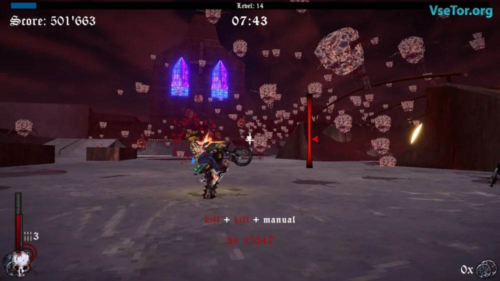 Если вы готовы столкнуться с ужасами, которые вас ждут, то скачивайте игру и почувствуйте, как адреналин наполняет каждую клетку вашего тела. В Motordoom каждый бой превращается в настоящий спектакль, где вы можете не только изничтожать врагов, но и демонстрировать свои навыки, выполняя невероятные трюки. Сражения здесь далеко не однообразны: они требуют от вас как точной стрельбы, так и мастерства в управлении. Не бойтесь рисковать — чем более сложные трюки вы выполняете, тем больше шансов получить ценные награды за вашу храбрость. Порой, чтобы выжить, необходимо заигрывать с опасностью и бросать вызов своим противникам, получая не только удовольствие от игры, но и заслуженное вознаграждение. Motordoom станет настоящим испытанием как для любителей аркадных экшенов, так и для тех, кто ищет захватывающее приключение с уникальным стилем игры.