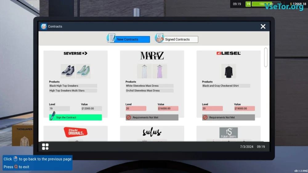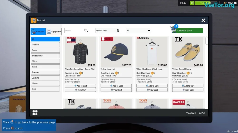 В начале вам необходимо расставить полки и вешалки, оборудовать кассовый аппарат и установить сотрудничество с производителями одежды. После оформления всех необходимых деталей, отправляйтесь на склад, чтобы забрать заказанную продукцию. Как только товары будут размещены в магазине, остаётся ждать первых покупателей. Принятие правильных решений и быстрая реакция на изменения в спросе помогут вам добиться успеха. Надо стараться предугадывать желания клиентов и адаптироваться к их запросам, чтобы обеспечить хороший финансовый поток.