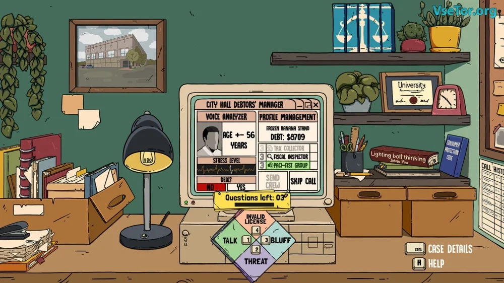 Debtors' Club — это увлекательное сочетание roguelite и нарративного приключения, в котором игроки принимают на себя роль налогового коллектора в мире, погрязшем в коррупции. Ваша задача — собрать долговые платежи, используя любую доступную стратегию: от уговаривания до запугивания и даже физического воздействия. Это дает возможность каждому игроку выбирать свой путь: можно действовать с добротой и честностью или, напротив, прибегнуть к более жестким методам, чтобы добиться успеха.