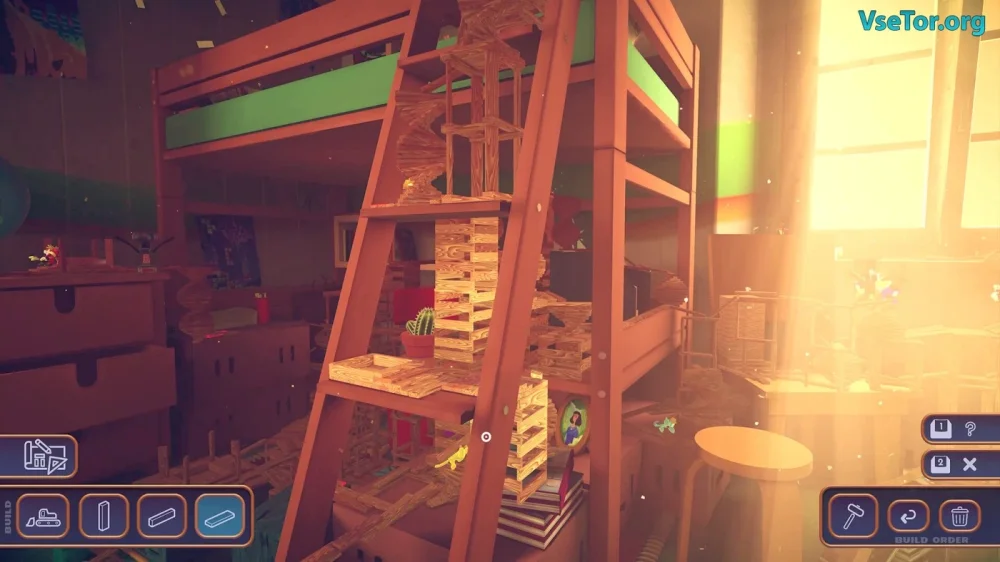 В игре Plank Builders вас ждёт захватывающее приключение в мире магических игрушек и волшебных шаров. Здесь вы сможете реализовать свои творческие способности, создавая уникальные сооружения из деревянных планок. Основная цель, с которой предстоит столкнуться игрокам, заключается в том, чтобы оживить ряд плюшевых обезьянок, используя магические шары, которые даруют им жизнь. Вместе с этими очаровашками вам нужно будет не только построить крепкие мосты и внушительные башни, но и исследовать таинственные помещения, полные загадок и удивительных находок. Однако учтите: пол в этой игре трогать нельзя! Каждая ваша конструкция должна быть прочной и хорошо спроектированной, поскольку физика здесь играет важную роль.