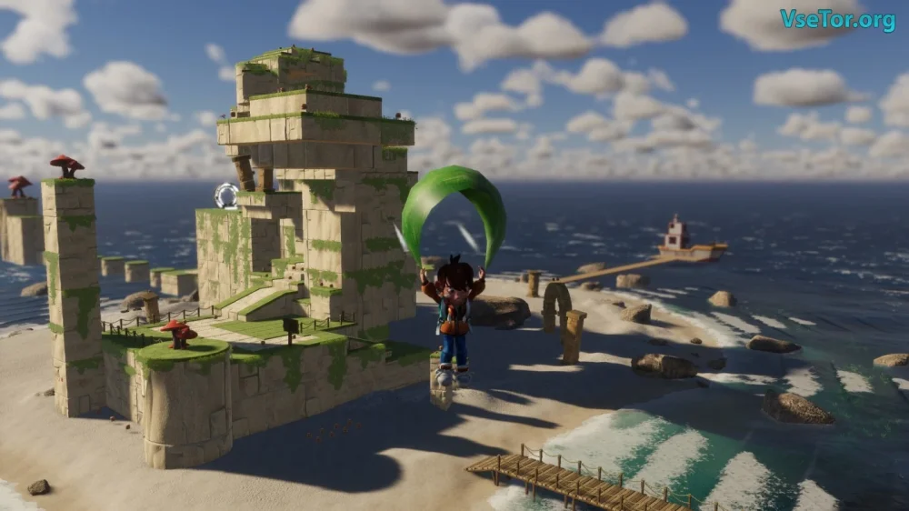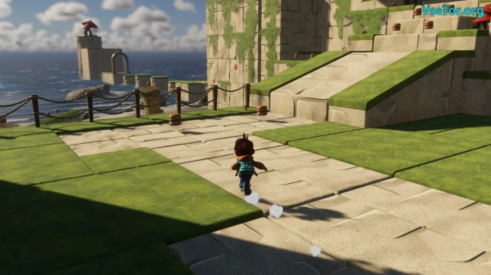 - Яркий визуальный стиль с разнообразными локациями, включая древние руины и загадочные водопады.