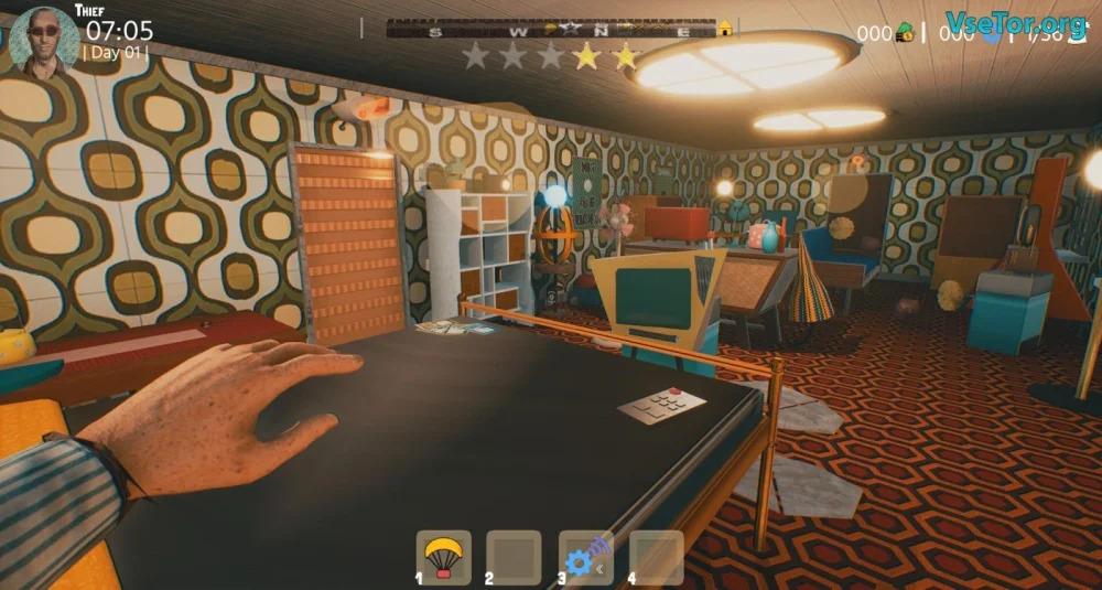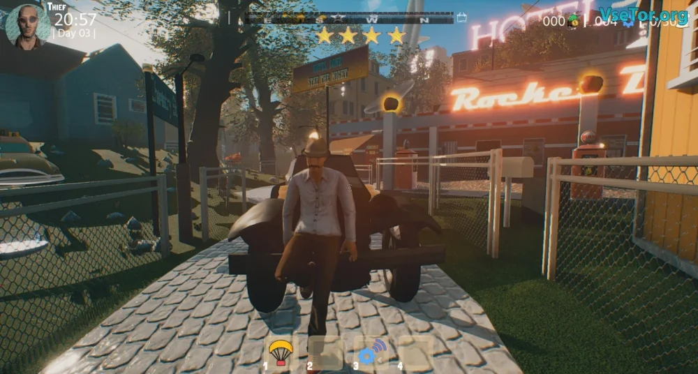 - Уникальная механика с разнообразными инструментами для краж, которые можно приобретать на чёрном рынке или находить в игровом мире.