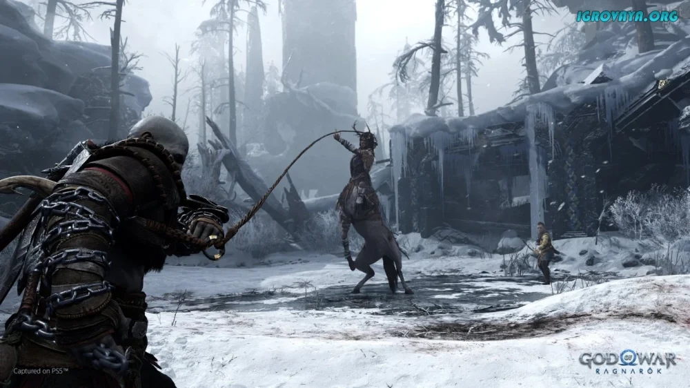 - Управление двумя персонажами, Кратосом и Атреем, позволяет тактически продумывать стратегии боя.