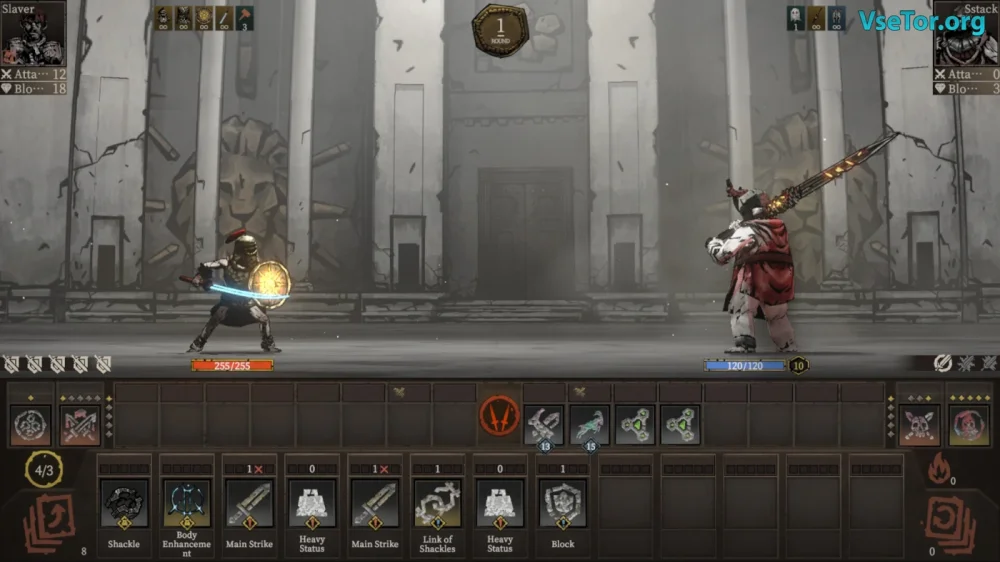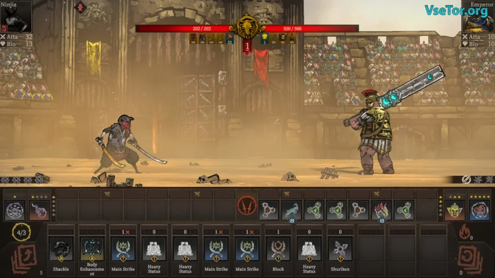- Забирайте снаряжение побежденных врагов, чтобы усилить своего гладиатора.