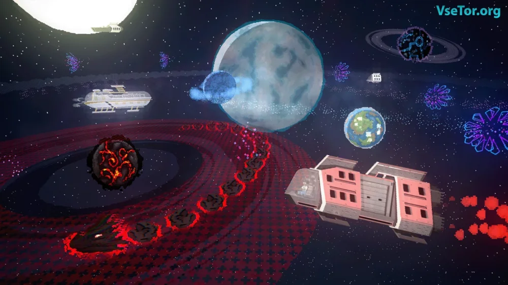- Пиксельная графика с элементами 3D, создающая атмосферу нарисованного мира.