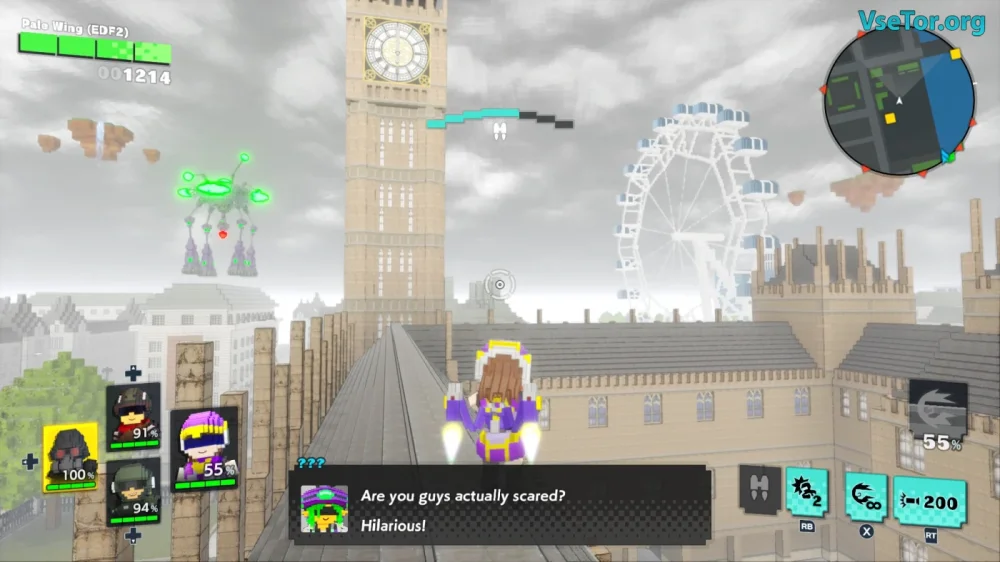 EARTH DEFENSE FORCE: WORLD BROTHERS 2 — это яркое продолжение увлекательной франшизы, в которой игрокам снова предстоит столкнуться с колоссальными насекомыми и злыми роботами. На этот раз игра представлена в кубическом, мультяшном стиле, который создает атмосферу лёгкости и веселья, напоминающую работы LEGO и Minecraft. История сосредоточена на новом враге — Гайарсе, что привел к разрушению Земли, оставив лишь ее осколки. Вам предстоит собрать отряд из четырех уникальных персонажей, известных как Братья и Сестры, каждый из которых представляет свою страну с особыми навыками и оружием.