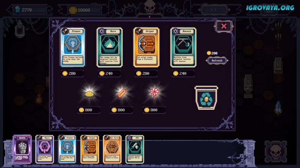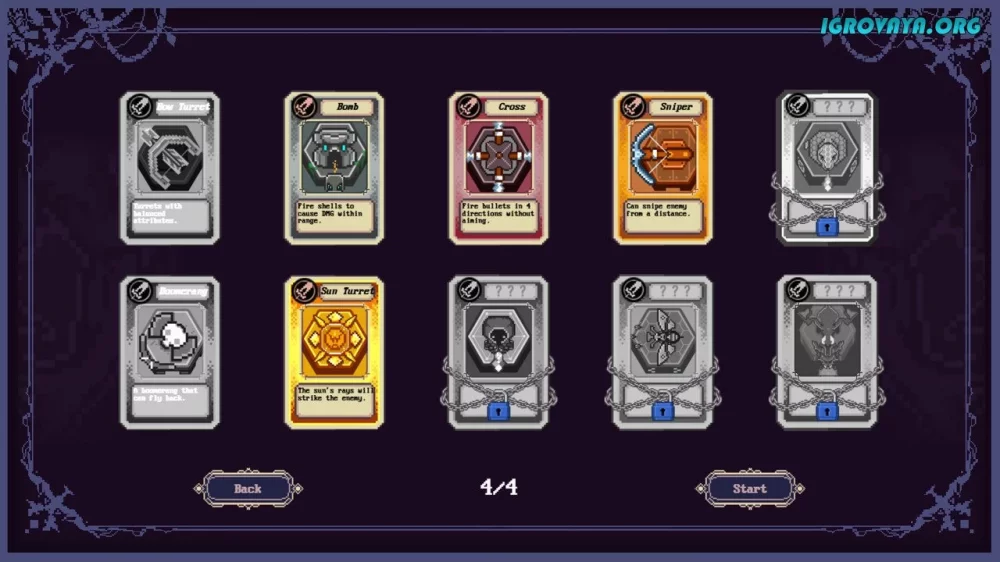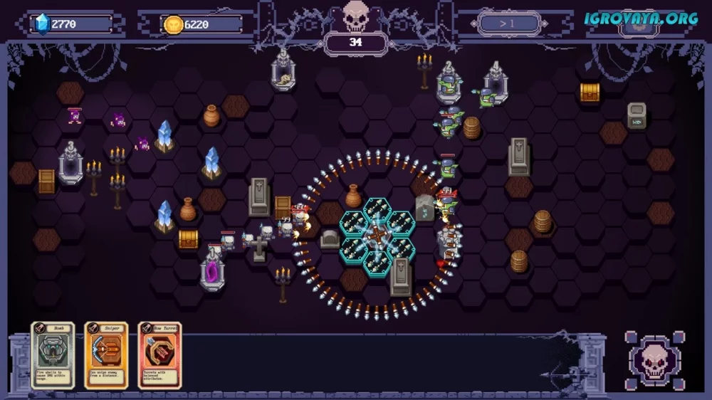 Стройте постройки с умом, учитывая их ограниченное количество на каждом уровне. Разместите их так, чтобы учесть радиус поражения и готовьтесь к выходу врагов. По мере накопления опыта игрок может покупать новые постройки и улучшения для турелей прямо во время матча. Они представлены в виде зеленых блоков, которые необходимо соединить с вашими постройками цепью, чтобы они функционировали. Противостоять придется не только слабым мобам, но и боссам, которые двигаются быстрее и обладают значительно бОльшим здоровьем. Сможете ли вы продержаться?