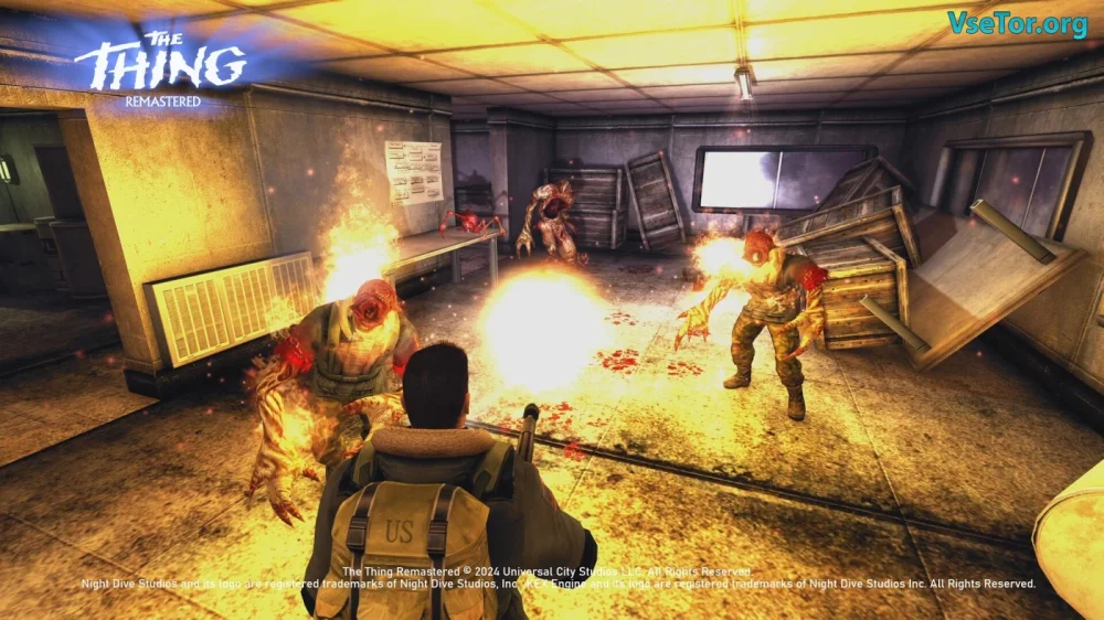 В захватывающей игре The Thing: Remastered вы снова окажетесь в мире ледяного ужаса, продолжив историю знаменитого фильма Джона Карпентера 1982 года. Сыграйте за капитана Джея Ф. Блейка и возглавьте спасательную команду на станции Outpost 31 в Антарктике. Ваша миссия — раскрыть загадочные события и сразиться с жутким врагом. После печально известных событий фильма, пришелец, способный принимать внешний вид своих жертв, еще не утих. Ваша задача — выжить и не дать команде погрузиться в паранойю.