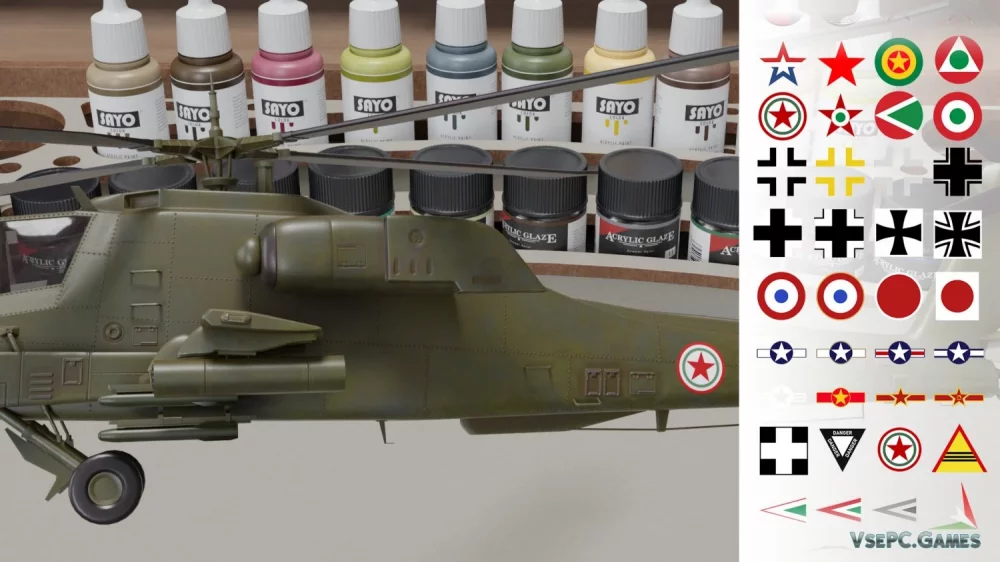 - Широкий выбор моделей техники: самолеты, вертолеты, танки, военные машины и многое другое;