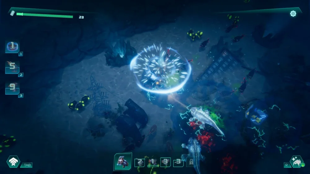 Ocean Keeper: Dome Survival приглашает вас стать повелителем глубин и защитником купольной базы среди бездны океана. Это тот случай, когда спокойные минуты добычи ресурсов сменяются лихорадочным отбиванием атак морских монстров за считанные секунды. В игре остро ощущается дилемма: остаться подольше в шахтах ради ценных артефактов или вернуться к базе, не рискуя напороться на волну врагов с пустыми руками. Мех-паук, который вы управляете, и выглядит круто, и ощущается тяжёлым бойцом: оружие работает с отдачей, лапы идеально анимированы, корпус страдает от ударов. Но шахтёрская часть сделана более просто — можно быстро добыть ресурсы и вернуться к бою.