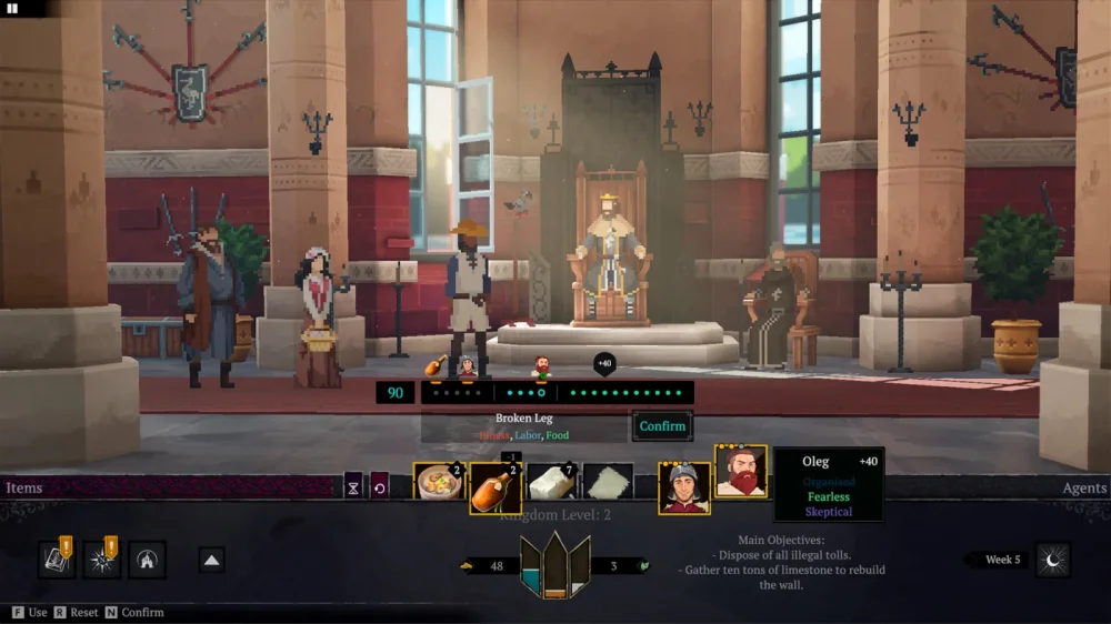 Yes, Your Grace 2: Snowfall возвращает нас в тронный зал Даверна — только теперь под завывания зимних ветров и звук бурчащих животов. Снежные бури, голод и отчаявшиеся подданные ставят корону на холодное испытание. Придётся выбирать: спасти семью или угодить совету, накормить крестьян или укрепить стены замка? Каждое ваше «да» или «нет» растёт в цепочку новых забот. Решения — как снежки: бросил один, а лавина реакций не заставит себя ждать. Игровой процесс — это столкновение стратегии и драмы: вы балансируете на грани, раздавая крохи золота, еду и задания верным агентам. Просители нервничают, агенты закаляются, а дети уже на вашей шее высидеть целый ледяной сезон! Появилась система предметов: удачно найденный инструмент может спасти целую деревню — главное, не забыть его дома. Новый визуал делает каждый уголок замка многозначительным, а славянский фольклор скрашивает даже скучные заседания. Изменились характеры персонажей: дети взрослеют, агенты подбирают привычки, а последствия ваших прежних решений цепляют по-настоящему. Зима, политика и семейные ссоры — что ещё нужно королю для бессонницы?