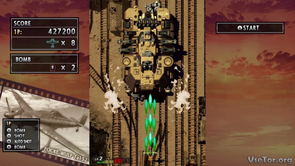 Выбрав свой самолет-истребитель из шести доступных моделей времен Второй Мировой войны, вы отправитесь на выполнение миссий. Используйте разнообразное вооружение, такое как бомбы и пулеметы, чтобы сразиться с вражескими самолетами и мощными боссами. С вами будет всего три жизни, поэтому действуйте решительно и точно.