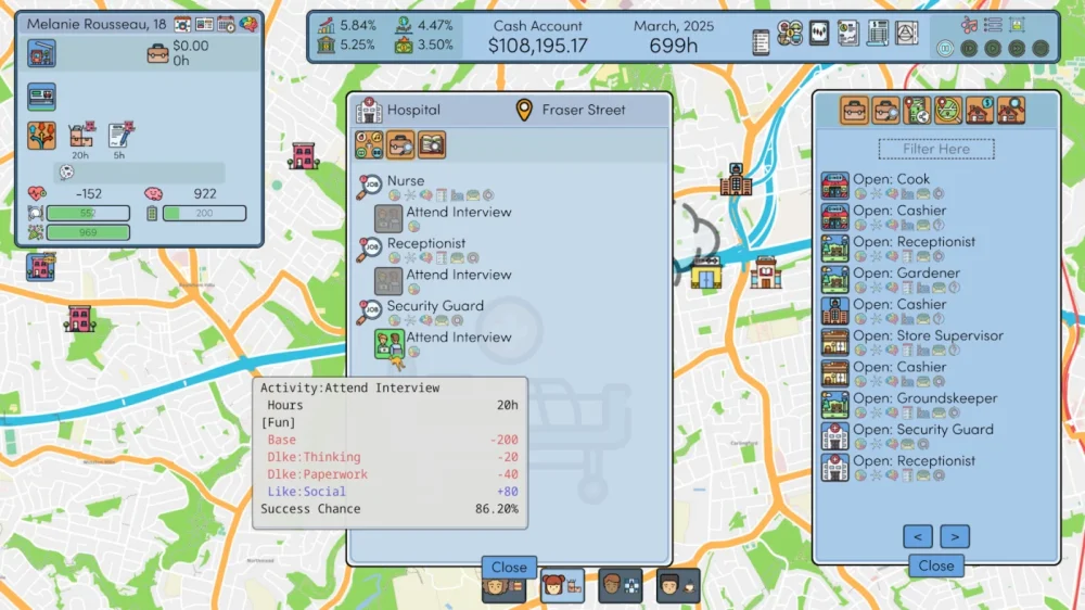 Экономические циклы добавляют реализма: успеете скупить акции перед подъемом или прогорите на ипотеке? Автоматизация помогает справиться с рутиной, хотя персонажи иногда ведут себя непредсказуемо: могут объедаться или проспать важную встречу.
