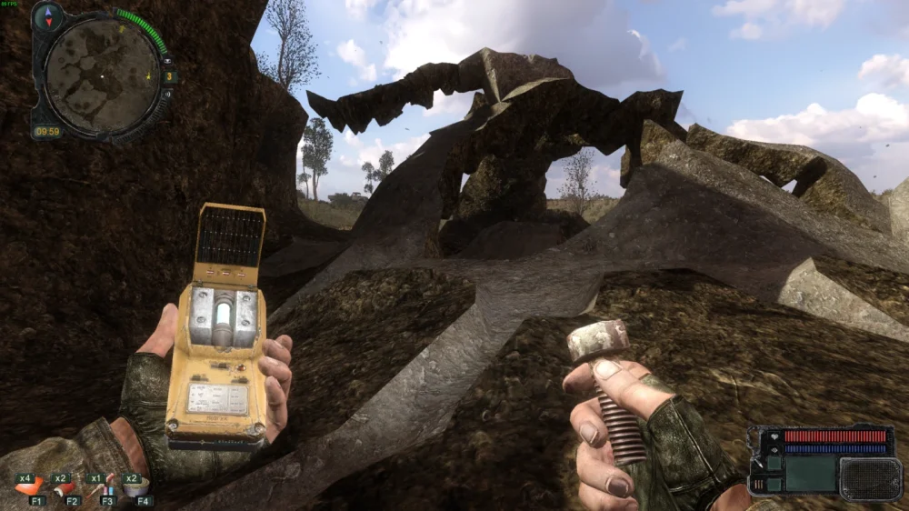 - Хардкорные механики выживания: вес, ограниченный инвентарь, меню без паузы.