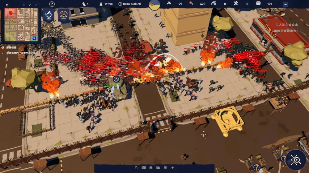 Вы не просто собираете материалы, а перерабатываете цивилизацию в оружие, стены и патроны. Управляете отрядом выживших, формируете подразделения и бросаете их в драку, когда ночью на ворота валится орда. Фронтовые стрелки держат линию, гранатометчики выкашивают толпы, танки прорываются сквозь ряды противника как бульдозеры. Важно не только число бойцов - тактика решает все. Где поставить турель, как расставить баррикады, когда пойти в контрнаступление - каждое решение влияет на исход ночи. А она приходит без предупреждения: красная точка на радаре, и вот уже тени ползут со всех сторон.