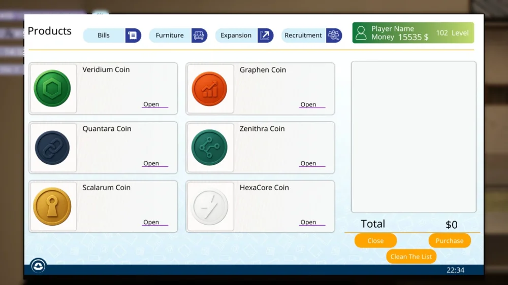 Постепенно переходите от физической работы к стратегическому планированию. Через компьютер в офисе заказываете новые товары, меняете цены, отслеживаете онлайн-заказы и криптовалютные платежи. Можете нанять кассиров для ускорения потока клиентов, а можете продолжать все делать сами - игра дает выбор, не принуждает. Улучшения здания открывают новые зоны, этажи и возможности для расширения бизнеса. Каждое решение по поставкам, ценам и расстановке полок имеет значение, и только вы определяете стратегию развития.