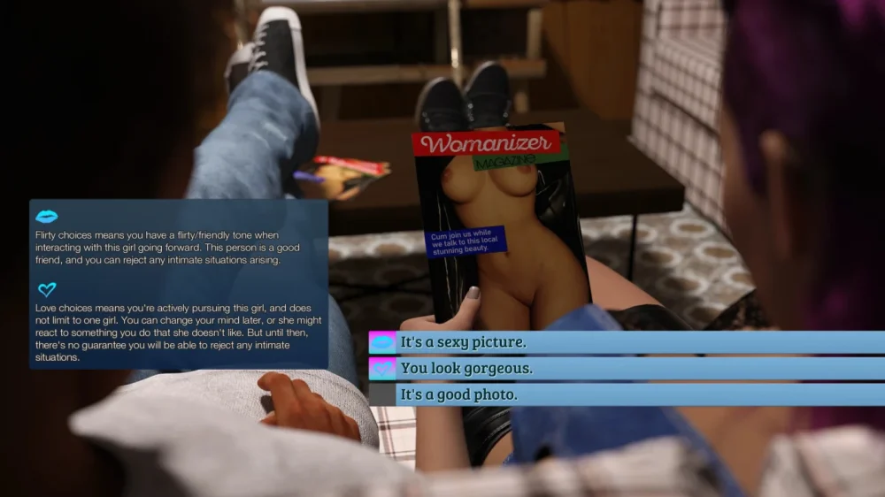 Знакомитесь с разными девушками - у каждой своя история, секреты и травмы. Есть выбор: строить роман, флиртовать, завести отношения без обязательств или держаться в стороне. Поведение главного героя влияет на развитие событий, можно выбрать один путь или перепробовать все варианты. Реализованы два режима - классическая визуальная новелла и свободное перемещение по локациям с сбором предметов и доступом к контенту через встроенный телефон. Сюжет развивается плавно с намеками на более крупную историю: пропажа Гины, план Ларса поднять настроение, поездка в особняк - все это ведет к финалу сезона, где ответов становится меньше, а вопросов больше.