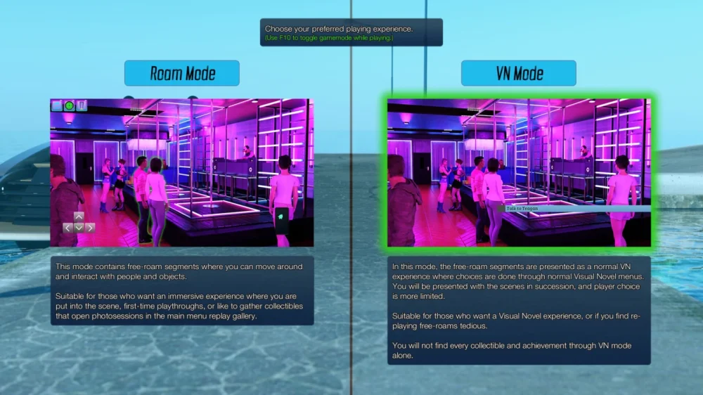- Комбинация визуальной новеллы с режимом свободного исследования острова