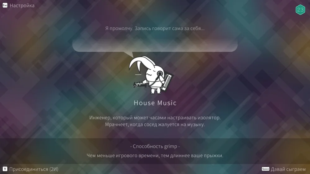 В игре 10 уникальных садов, но повторяющиеся темы оживают благодаря более чем 20 Гримпам с разными способностями. Один прыгает бесконечно, другой искажает гравитацию, третий упрощает сбор пыльцы. Дополняете стиль специями - одноразовыми бонусами, которые меняют длину нити, добавляют времени или расширяют радиус сбора. Вы не просто проходите уровни, а выращиваете их, создавая новые пути к цели. Режим для двоих позволяет играть локально: если один упадет, второй может вытащить обратно. Это не борьба за выживание - здесь нет смерти, только медитативный поток действия, особенно затягивающий в бесконечном режиме.