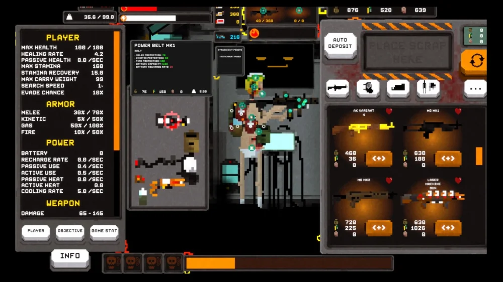 Теряете все снаряжение при смерти, но не зря: между забегами копится опыт для открытия постоянных имплантов - они ускоряют передвижение, улучшают прицеливание или дают устойчивость к ядовитому газу. Внутри каждого прогона собираете оружие и модули на ходу: глушитель для скрытности, лазерный прицел для точных выстрелов, увеличенный магазин или даже огнемет. Хотите бегать в полной тишине с ночной оптикой или ворваться в зал с дробовиком и дымовой гранатой - выбор за вами, и он решает доживете ли до следующего коридора. Сеттинг балансирует между техно-ужасом и черным юмором: вы с начала почти голы, человечность тает с каждым имплантом, а название игры - констатация факта, не шутка.