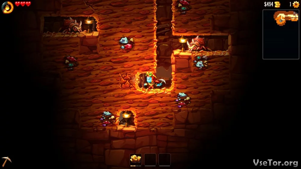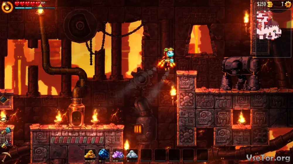 В целом, Steamworld Dig 2 остается верным своим корням – это захватывающий платформер с увлекательным игровым процессом. Исследуйте подземные глубины, сражайтесь с врагами, прокачивайтесь и выходите на поверхность, чтобы продолжить свое приключение.