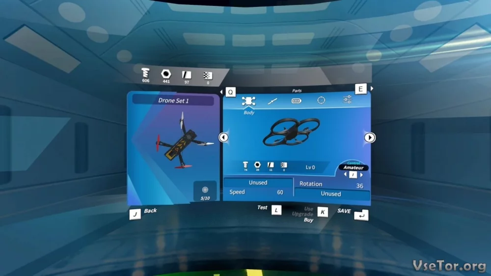 - Соревновательные заезды, модернизация дрона, победы и заработок денег.