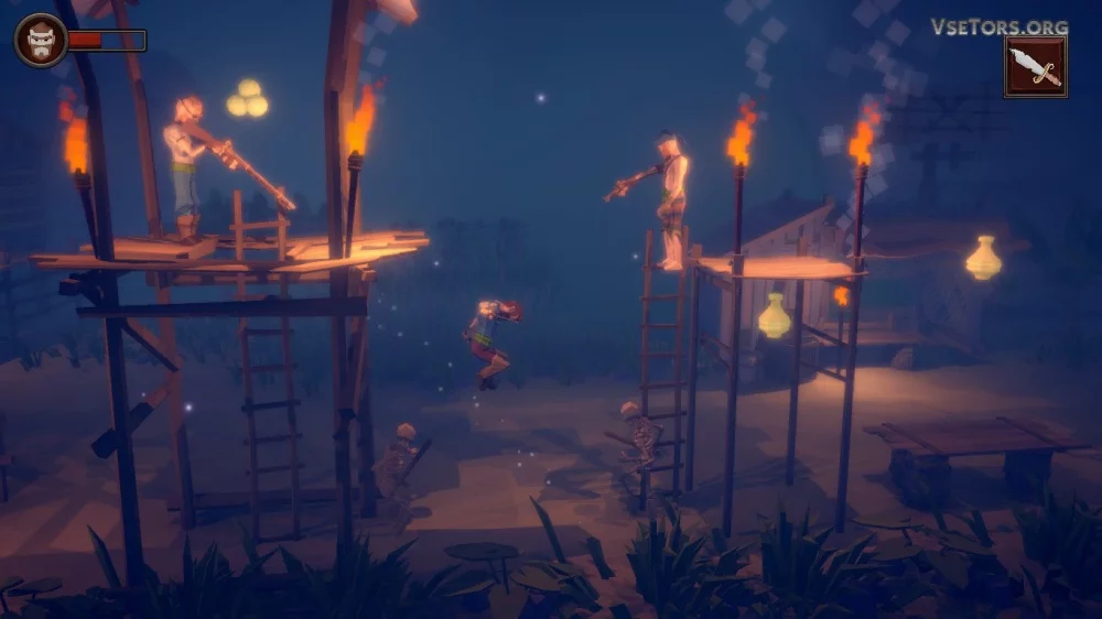 Путешествие на Пиратский остров обещает быть захватывающим! Главный герой отправился на поиски своей возлюбленной, похищенной пиратами и ожившими скелетами. Ему предстоит сражаться с разными врагами, искать боеприпасы и прокачиваться, чтобы спастись и сбежать с проклятого острова.