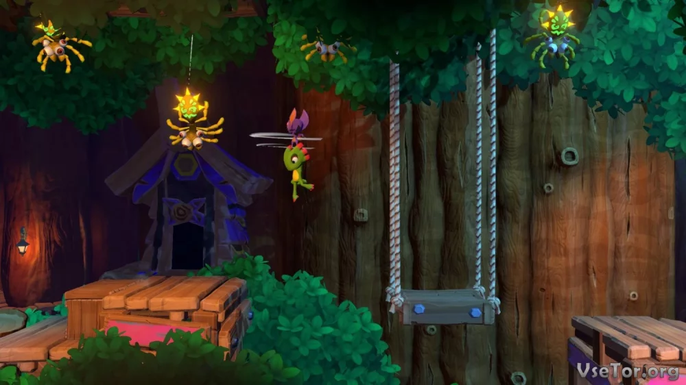 Игровой процесс нового приключения Yooka и Laylee наследует механику предыдущей игры, но добавляет новые интересные особенности. Вас ждет прохождение уровней, решение головоломок, преодоление препятствий при помощи уникальных способностей обоих персонажей. Разработчики обновили визуальный стиль игры, добавив больше динамики. Теперь вы можете управлять шаром, на котором катится летучая мышь, и использовать другие умения для прохождения уровней.