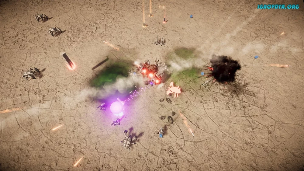 - Широкий выбор оружия, включая пулеметы, лазеры и гранатометы.