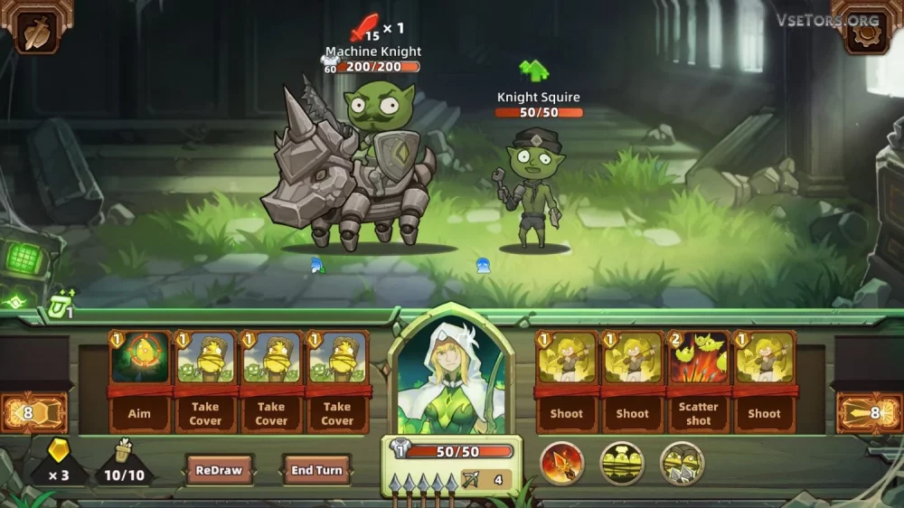 - Карточная система позволяет проходить игру по-новому каждый раз.