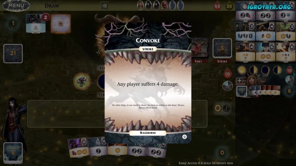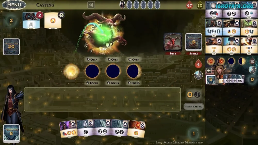 - Уникальная механика игры, где отсутствует случайность: ваша колода карт остается неизменной после каждого хода.