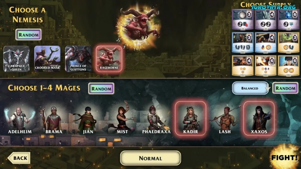 - Создание отряда из четырех магов с различными способностями для построения эффективной стратегии.