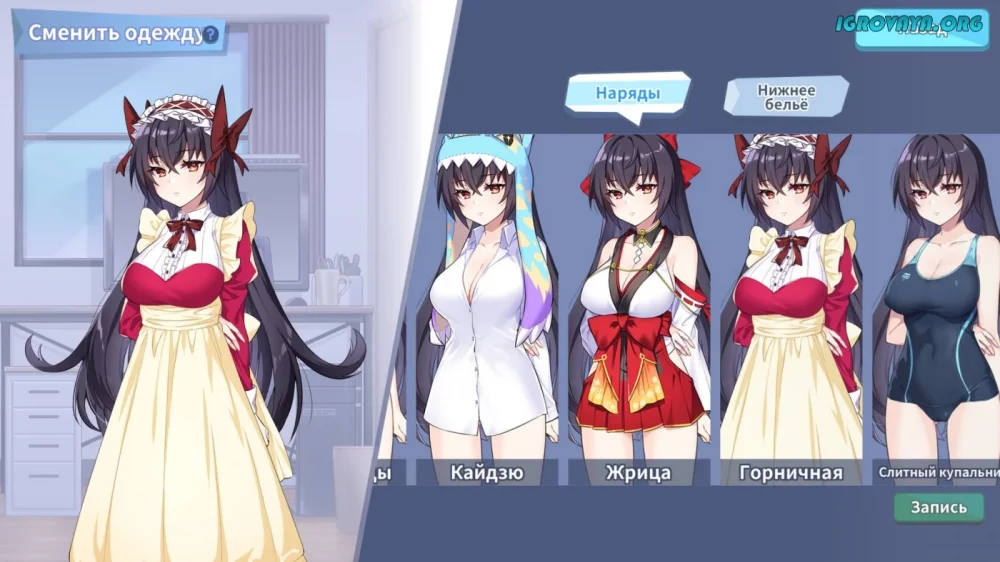 - Возможность взаимодействовать с главной героиней и менять ее наряды.